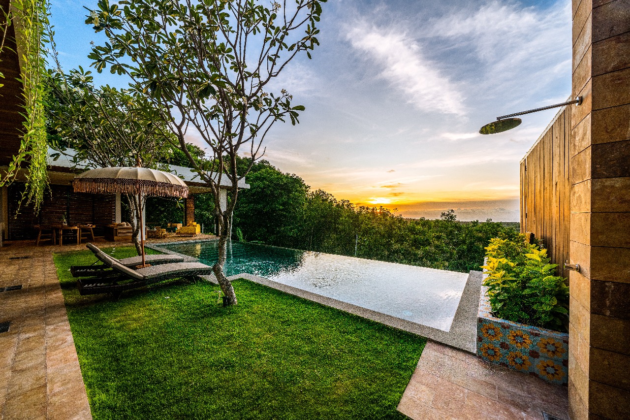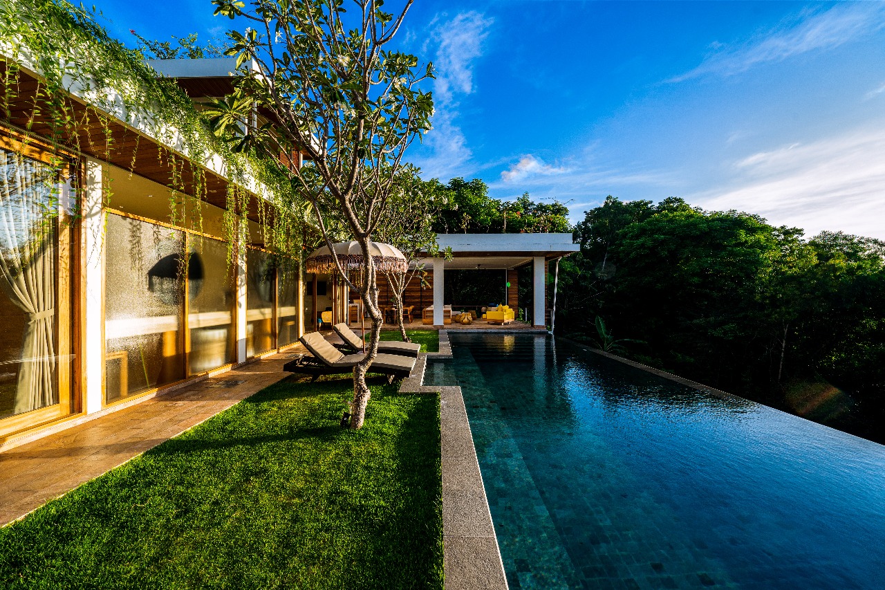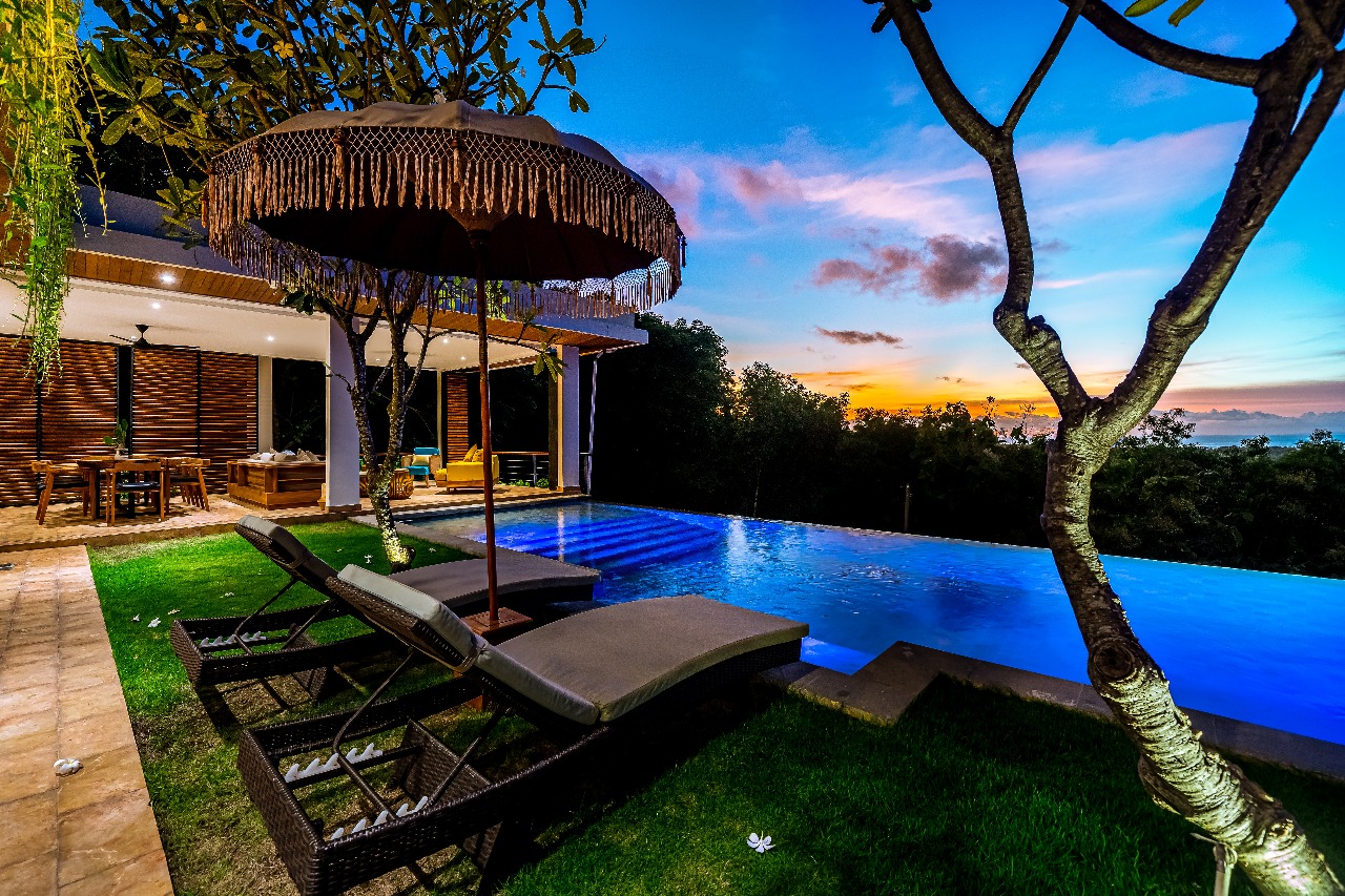 Equipped with a Full Western Style kitchen and a very charming living room, both having direct access to a private panoramic infinity pool.and garden.
